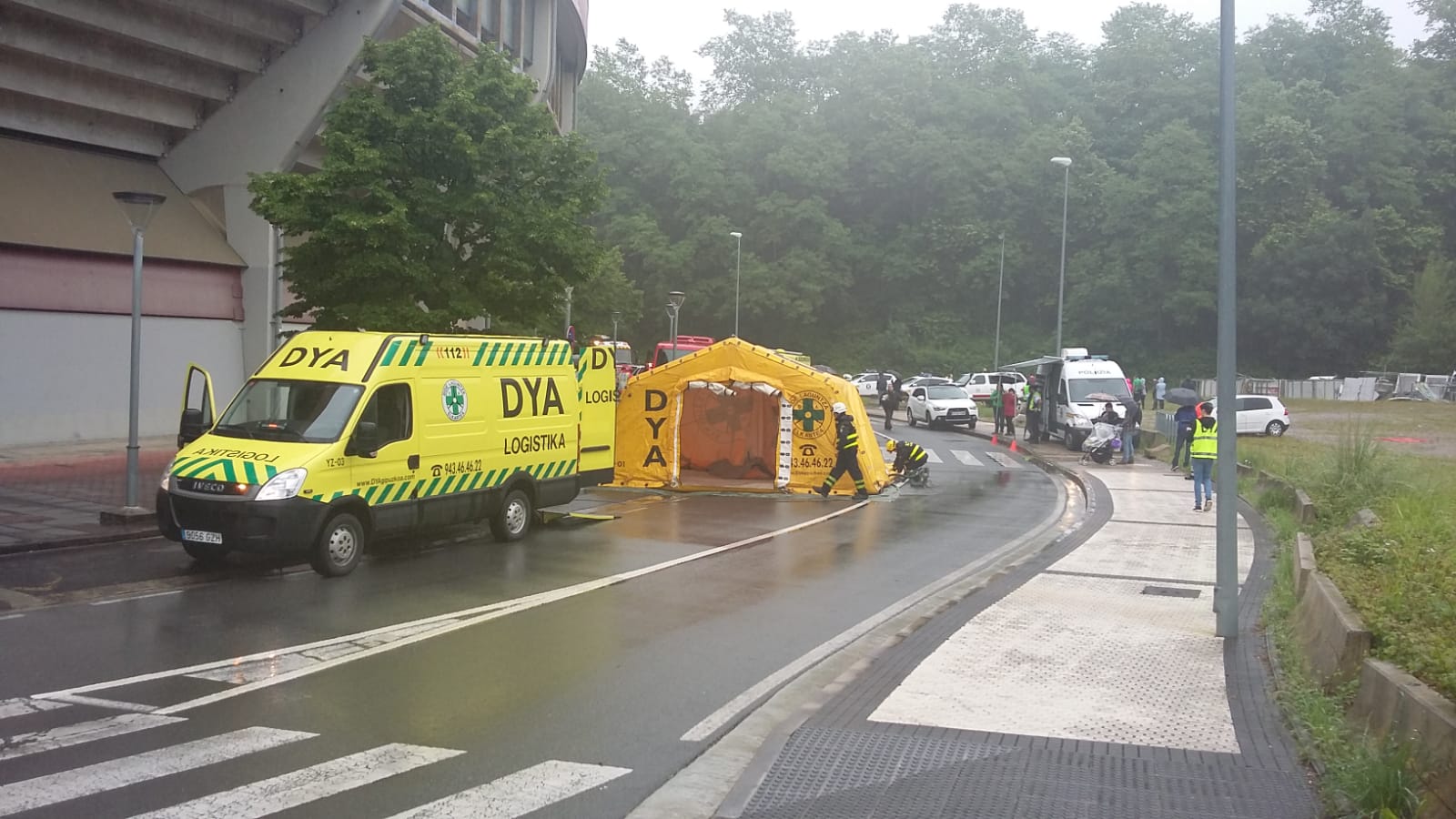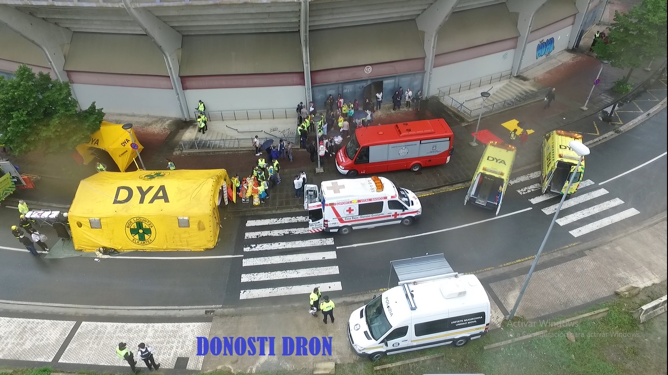 Imágenes del ejercicio de simulacro desarrollado en Illunbe dentro del marco de las XII Jornadas de Riesgos y Emergencias. En su desarrollo, que ha durado unas dos horas, se ha simulado una explosión en el interior de la plaza de toros con aproximadamente 100 espectadores implicados.